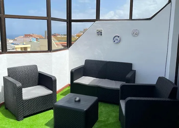 Tenerife North lufthavn ligger omkring 35 km væk fra indkvarteringen. En terrasse vender ud mod byen.